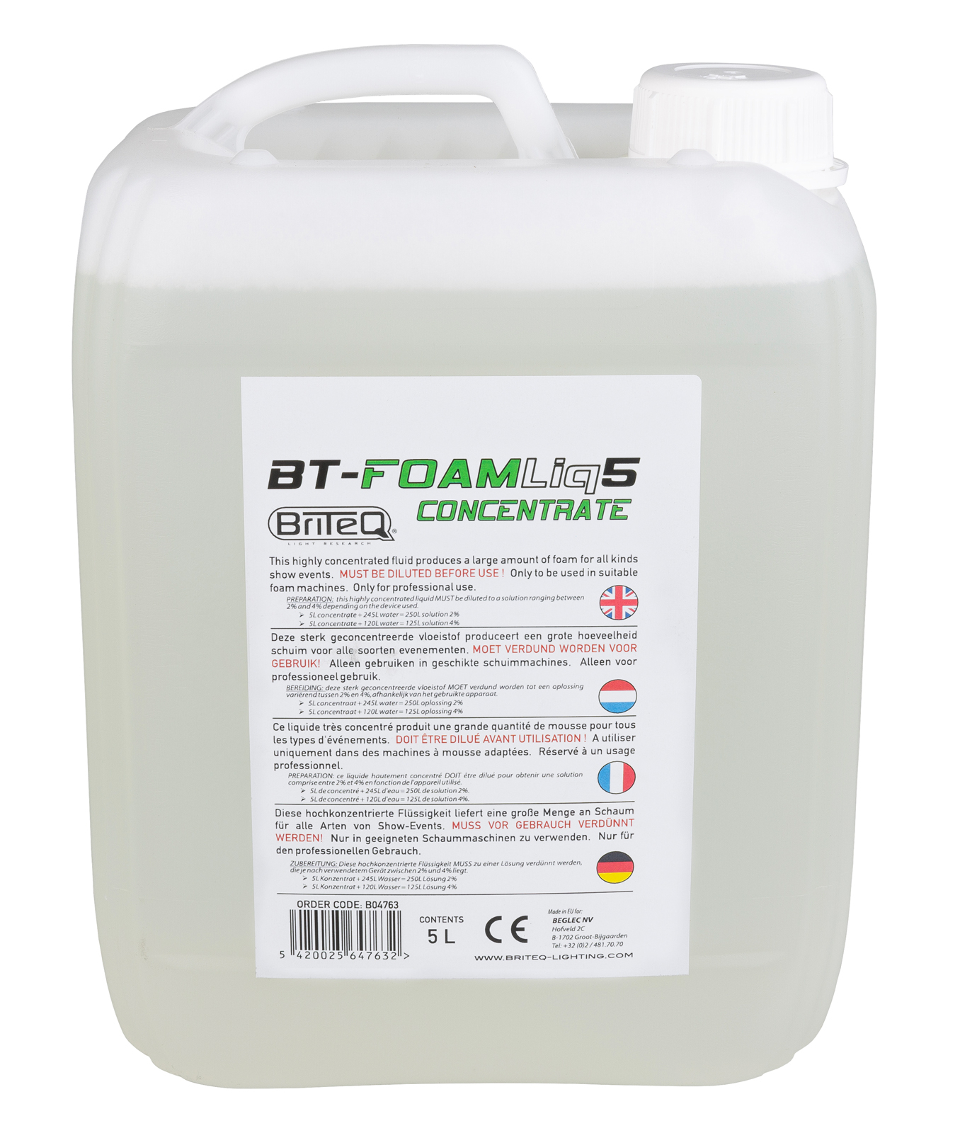 BT-FOAMLIQ5 este un lichid concentrat pentru producerea de spumă, conceput pentru a oferi rezultate excelente și de lungă durată. Compoziția spumei obținute este extrem de aerată, fiind ideală pentru utilizarea în diverse aplicații profesionale.
