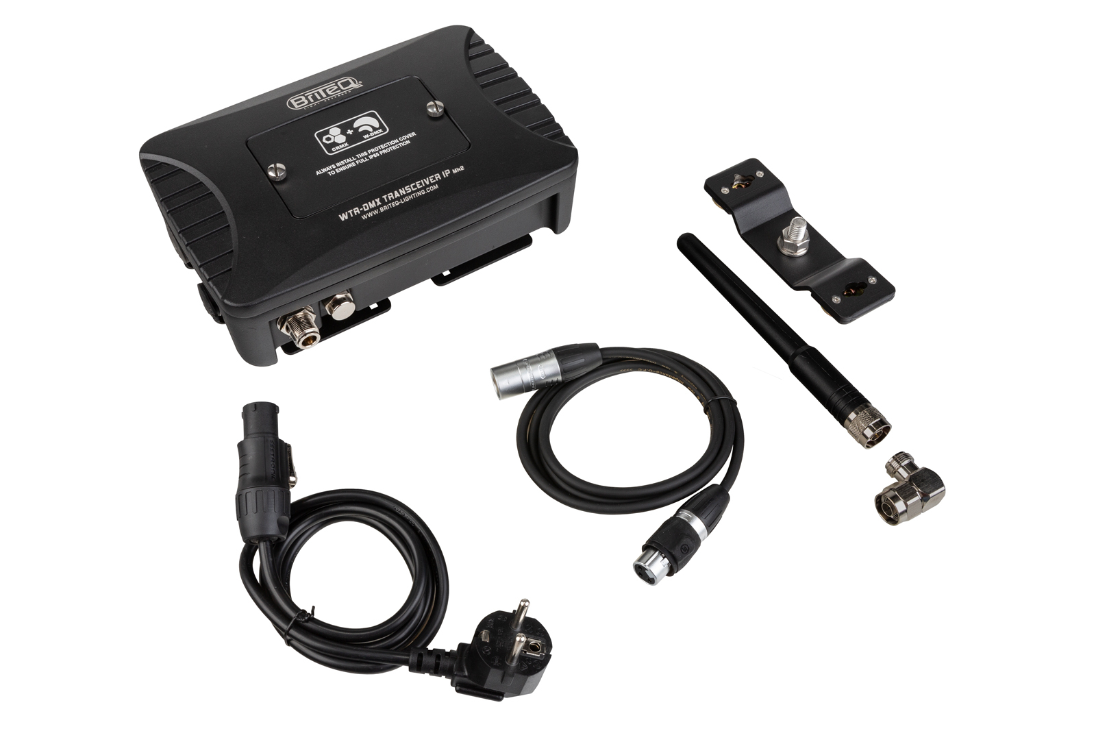 WTR-DMX Transceiver IP Mk2 este un transceiver wireless DMX pentru utilizare în aer liber, având un grad de protecție IP65. Acesta poate funcționa atât ca emițător, cât și ca receptor, fiind compatibil cu protocoalele LumenRadio® CRMX și Wireless Solutions® W-DMX™. În modul emițător, suportă CRMX classic și W-DMX™ G3/G4S, iar în modul receptor, suportă CRMX², CRMX classic și W-DMX™ G3/G4/G4S/G5.