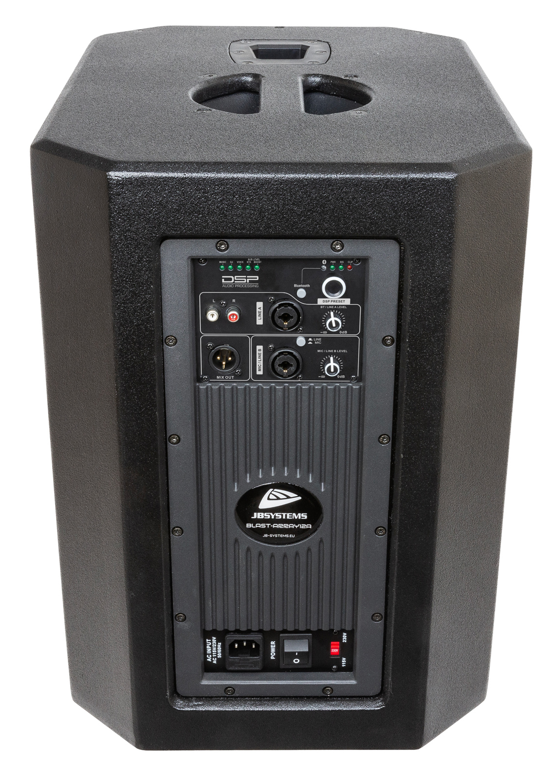 Setul de boxe active BLAST ARRAY12A include un subwoofer de 12 inch și o coloană de 8 difuzoare de 3.5 inch, oferind o putere de 450W RMS. Dispune de procesor DSP cu presetări multiple și intrări mixabile, fiind ideal pentru diverse aplicații audio. Construcția din placaj și vopseaua poliuretanică asigură durabilitate.