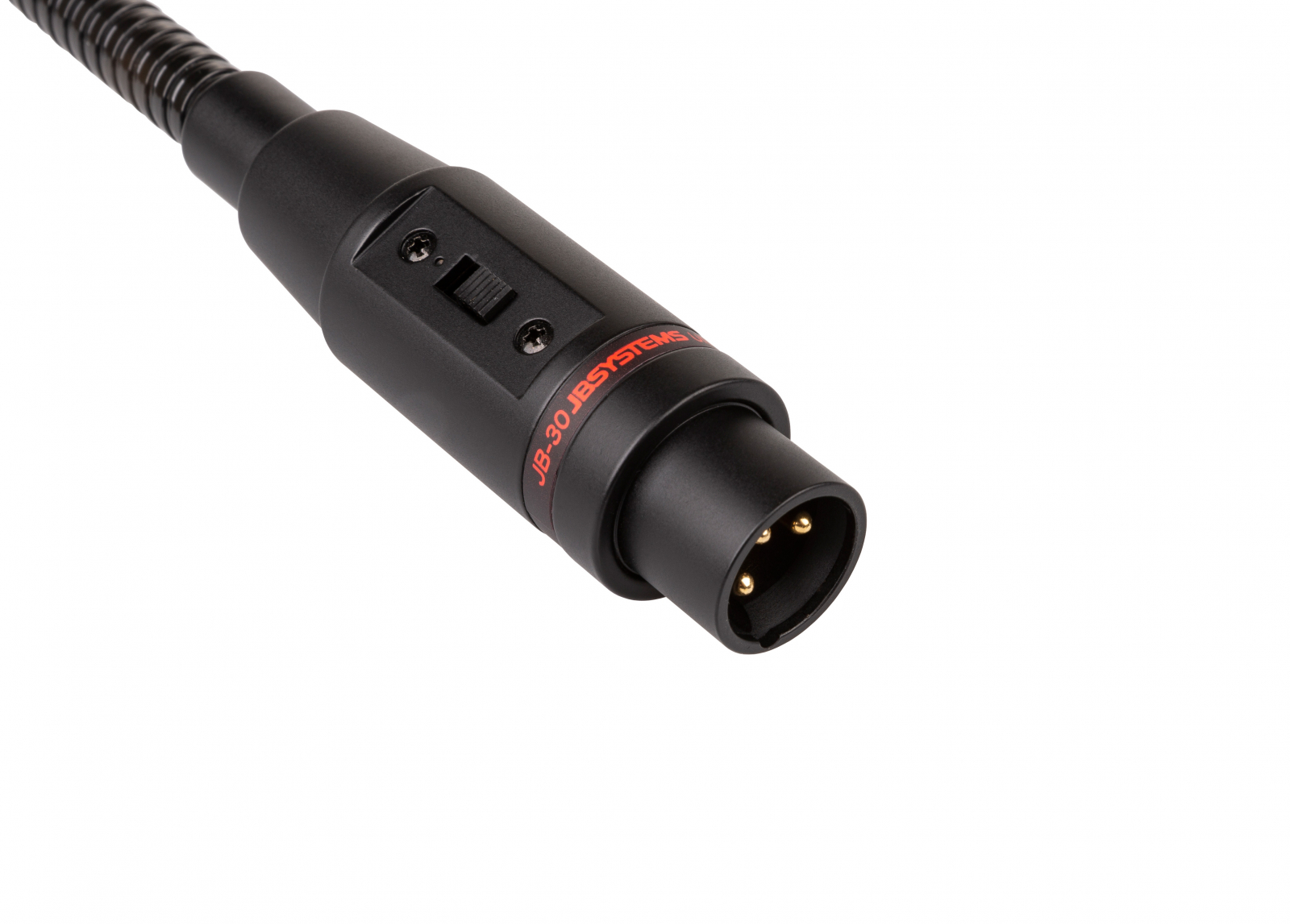 Microfonul JB30 are un gât flexibil de 30 cm și este ideal pentru conferințe și întâlniri. Caracteristicile includ directivitate unidirecțională, sensibilitate de -74dB, impedanță de 500Ω și frecvență între 80-14.000 Hz. Dispune de conector XLR masculin și comutator on/off.